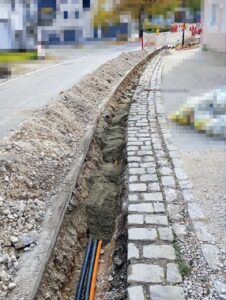 Für unser Projekt sind die Tiefbauarbeiten nun endlich abgeschlossen, ab dieser Bauphase werden wird auch unabhängiger vom Wetter, da Tiefbauarbeiten bei Schnee und Frost meistens nur bedingt möglich sind. Aktuell enden 2 Pipes von dem verlegten Verbund bei uns im Lager. Sobald der Kabelzug vom Bauunternehmer erfolgt ist, und der Übergabepunkt im Lager montiert wurde,