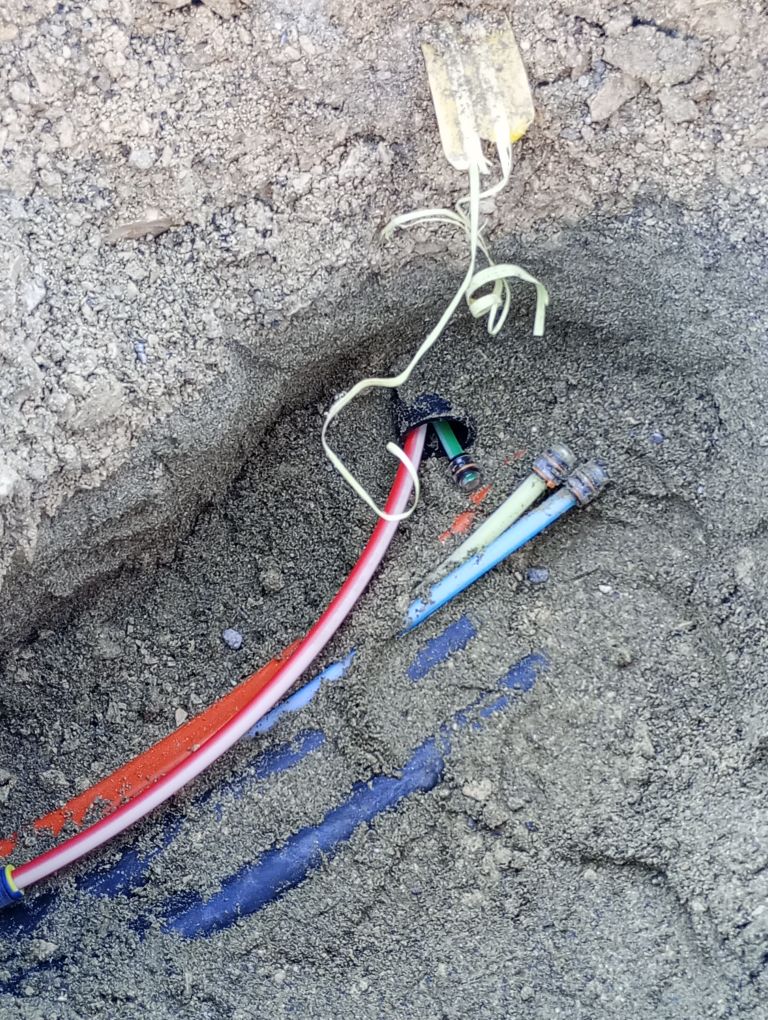 Bei dem grünen Leerohr handelt es sich um dasjenige Leerohr, das wir später verwenden möchten, um über eine unabhängige Trasse Redundanzen abbilden zu können, damit hier später nicht wieder gegraben werden muss, haben wir dieses gleich mitverlegen lassen.