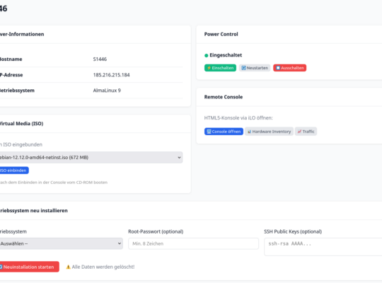 In diesem Blogbeitrag möchten wir euch unser eigenes Verwaltungspanel für Dedicated- und Bare-Metal-Server vorstellen. Bisher haben wir – wie vermutlich viele andere Anbieter auch – auf kommerzielle Lösungen externer Hersteller gesetzt. Das Produkt, das wir seit rund drei Jahren im Einsatz haben, funktioniert zuverlässig und erfüllt seinen Zweck grundsätzlich sehr gut. Doch wie es bei …